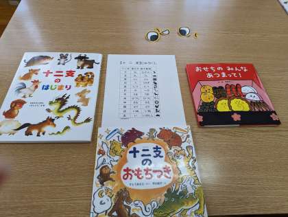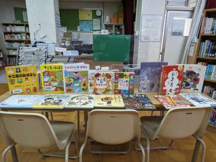 学校司書だけでなく、生徒、教員も加わり、リレー形式で、一冊の干支の絵本を順番に少しずつ読んでいく試みです。