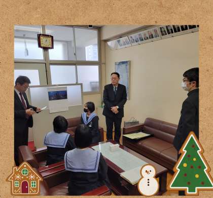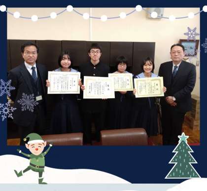 中学生の『税についての作文』受賞者の皆さんの表彰式を校長室において行いました。