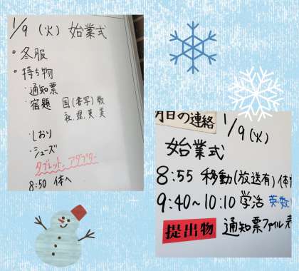 また、持ち物として、『通知票』や『宿題』など、忘れ物のないように準備しておきましょう。