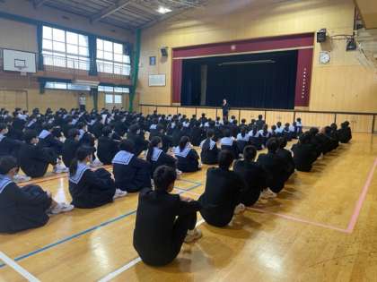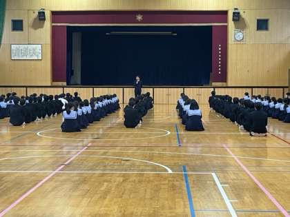 3年生、朝の学年集会です。