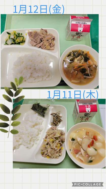 お正月行事献立 公開日 2024/01/12 更新日 2024/01/12 お知らせ お正月は過ぎましたが、昨日の献立は『お正月献立』。『雑煮』『ごまめ』が出ました。白玉もちや里芋が入っていて柔らかくて美味しかったですね。 今日は具材豊富な『みそ汁』と『豚肉のごまだれ焼き』でした。今年も美味しい給食が楽しみです。 いいね(0)