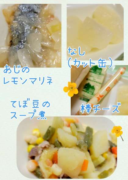 あじのレモンマリネ 公開日 2024/01/15 更新日 2024/01/15 お知らせ 『あじのレモンマリネ』。青魚のあじをカリッと揚げて、レモンの酸味と玉ねぎの甘さのバランスが抜群! 美味しいですね。 デザートは『なし(カット缶)』で後味さっぱりで締めくくりです。 ごちそうさまでした。 いいね(0)
