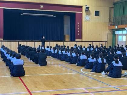 3年生、朝の学年集会です。 先生から「努力」についてのお話がありました。