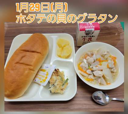 1月29日(月)は『ホタテの貝のグラタン』でした。