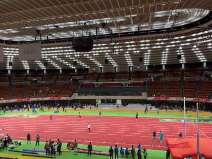 陸上競技部 公開日 2024/02/02 更新日 2024/02/02 部活動 明日から大阪城ホールで行われる日本室内陸上競技大会の前日練習に来ています。 全国各地からたくさんの選手が集まっています。 陸上競技部の工藤くんもU16・60mHに出場するため、練習を行なっています。 初めての室内ということで、室内タータンの感触を確かめながらのウォーミングアップです。 いいね(0)