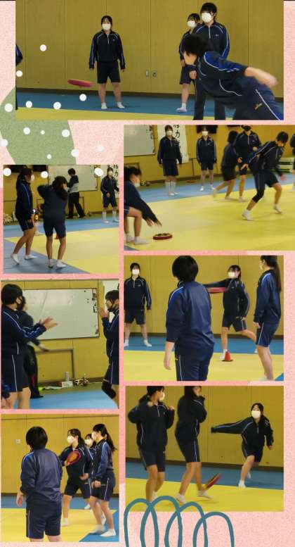 三年生女子体育では、体つくり運動として、『しっぽ取り』や『ドッチビー』などを取り入れた授業を行っていました。