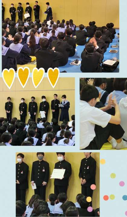 委員会関係に携わってきた生徒たち、こうして学年集会で報告にも随分慣れて来ました。この経験を今後にしっかり生かし、更なる成長を期待します。