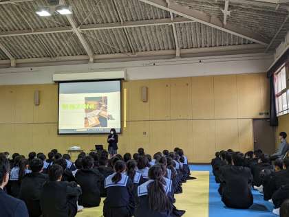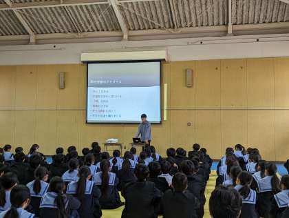 講話を聴き終えた生徒たちからは、「あんなに堂々とお話をされていてすごい!」「とてもわかりやすかった。きけてよかった。」「進路についてまだわからず心配だったけれど、先輩たちを見習ってがんばりたい。」など感謝の言葉があふれていました。学校で今の三年生の集中力や頑張りを肌で感じている二年生。次年度自分たちが三年生になったとき、同じように集中して努力ができるのかと心配もあったようです。この時期に卒業生の先輩からお話がきけて、本当によかったです。