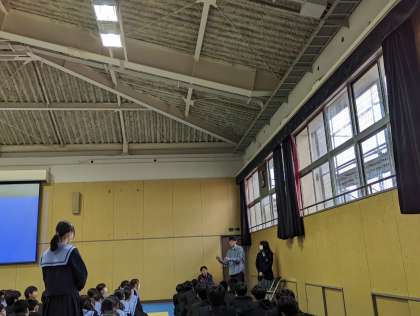二年生は金曜日の6限目、三年前に本校を卒業した75期生の先輩二人から、進路について講話をききました。この取り組みは今回初の企画です。