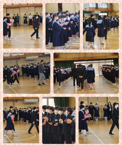 終わりに、繰り返しになりますが、先輩方が安心して卒業を迎えられるように「私たちは自信を持って大丈夫」と言えるようにします。改めてこれまでの先輩方がしてくださった分からないことを教えていただいたり、勉強に真摯に取り組む態度であったり、あいさつは決して忘れません。その姿へ私たちが近づけるように、日々の学校生活をしっかり送っていきます。