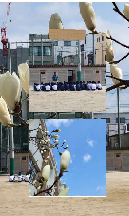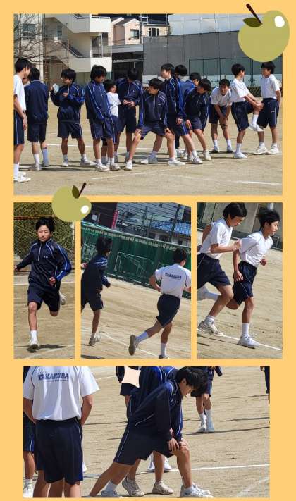 ハクモクレンの花が青空に向かって咲き誇る春を感じさせる運動場、一年生体育は1500m持久走に臨んでいました。