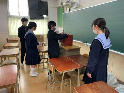 生徒会役員選挙を行なっています。 投票の様子です。