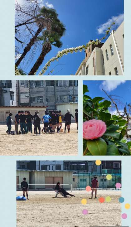 昨日は雨のなかではありながら元気に活動していたラグビー部。今日は快晴、さらに大きな声を出して練習に打ち込んでいました。