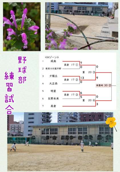 現在、大阪市中学校軟式野球部の春季大会が開催されています。野球部は、3月30日(土)に三回戦に臨みます。
