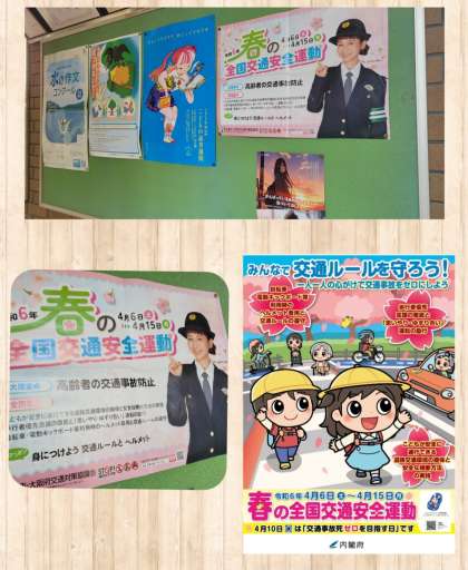 玄関正面掲示板に『春の交通安全運動』のポスターが掲示されていました。