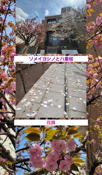 ソメイヨシノの花びらが花屑になるなか、八重桜が満開になっています。