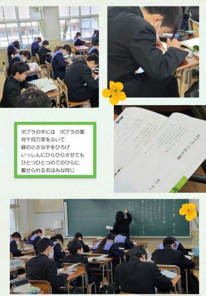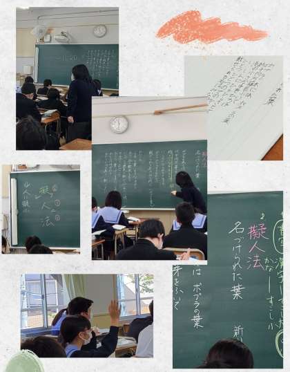 書写を行い、擬人法の箇所に線を引きます。みんな、すごい!