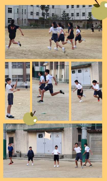 運動場中央で陸上部が走り込んでいます。その距離約50メートル。一年生に優しく声をかける上級生の姿がありました。