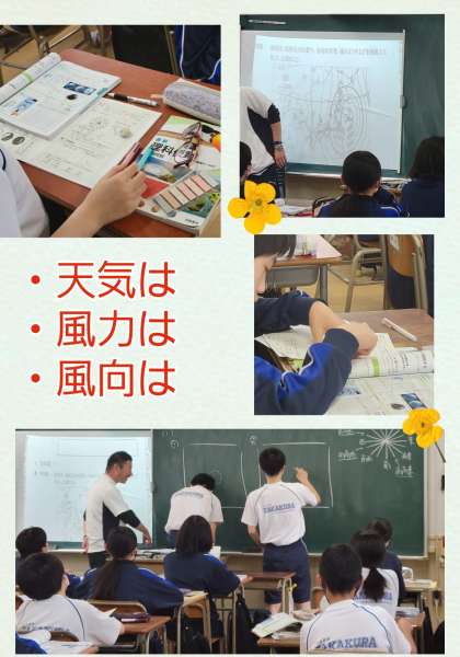 天気図から、日本各地の天気や風の強さなどを学びます。