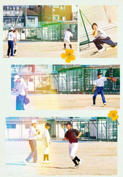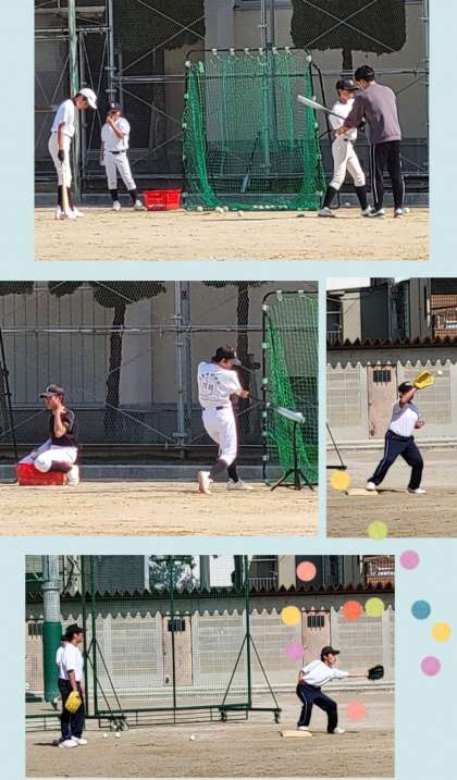 野球部では、一年生も上級生に混ざってノックを受けています。