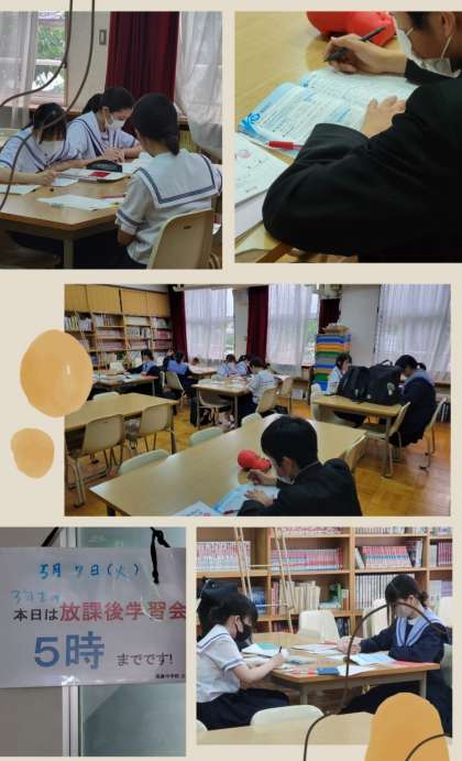 三年生が5月13日(月)からの中間テストに備えて、学校元気アップよる放課後学習会に参加し学習に励んでいます。