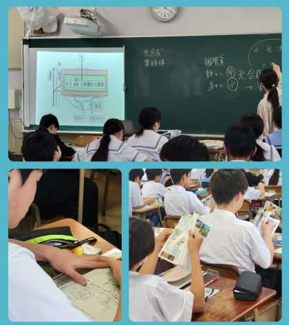 実験資料図から考察を行い、光合成に必要なものを学んでいました。