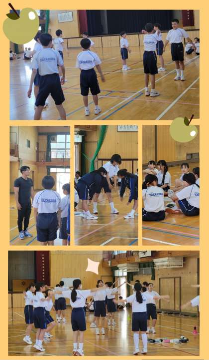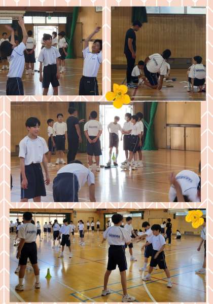 一年生体育授業では、グループになりラジオ体操に取り組んでいました。