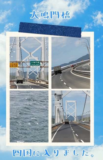 淡路島から大鳴門橋を渡り、四国に入りました。少しずつ風も弱くなってきたように思います。
