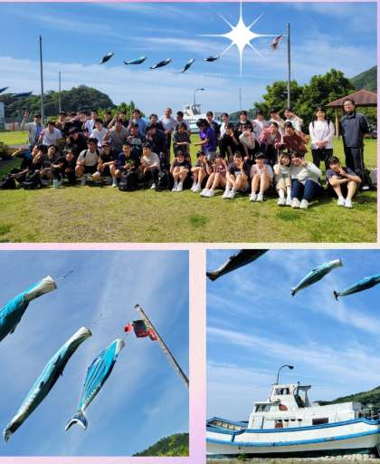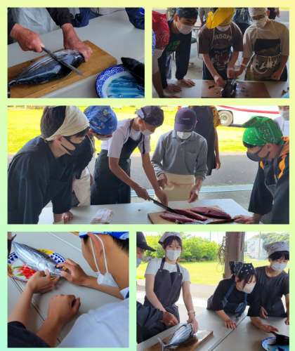 カツオのぼりに見守られ、『カツオのたたき体験』が始まりました。