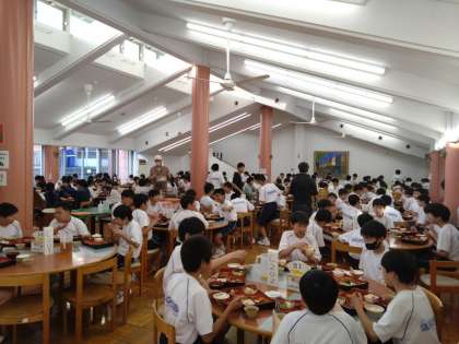 楽しい夕食タイムです。みんないい顔で食べてます。