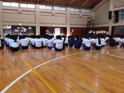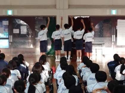 各クラスの代表が宣誓を行い、室内オリンピック開幕です!
