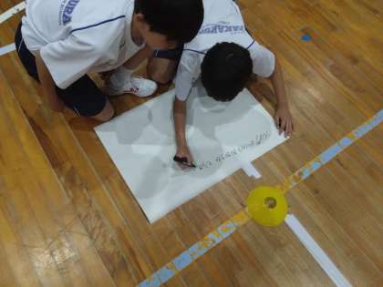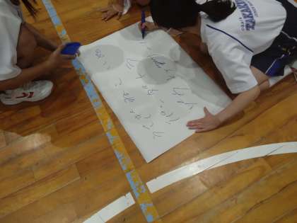 4種目は「連想クイズ」。お題に当てはまるものを10秒間にいくつ書けるかを競います。都道府県10個も書いたクラスが2クラスも。速い!