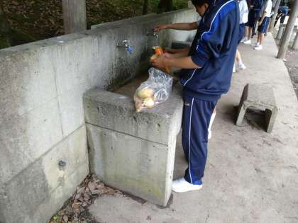 2日目のメインイベント「野外炊事」のスタートです。班で協力してカレーづくり。