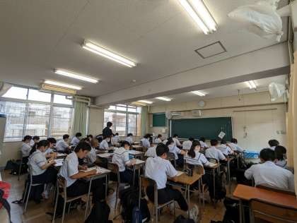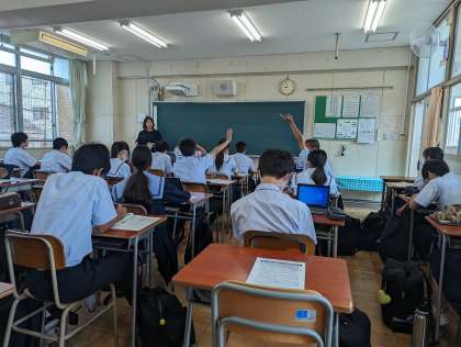 本日1限め、総合的読解力育成の授業がありました。今回は、和食を食べたくなるとき、好きな和食、食事中のマナーとその継承などについての内容でした。授業中、活発に手が挙がっていました。