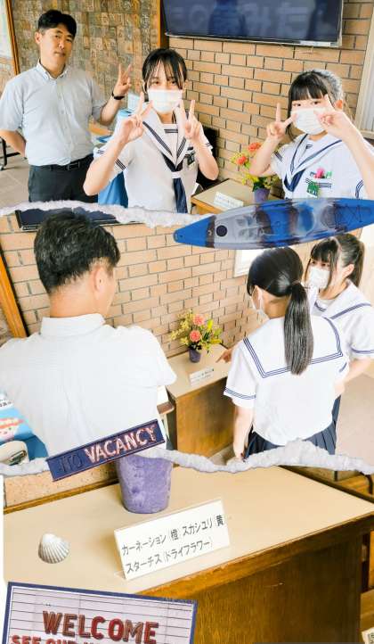 玄関に生けられたお花が話題の中心です。