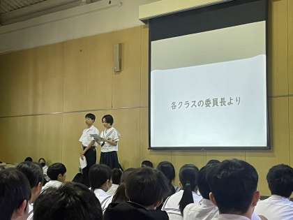 各クラスの委員長が持ち物や確認事項、諸注意などを全体に伝えました。