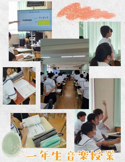 一年生音楽では、まず導入で校歌を熱唱!高中生として当たり前!
