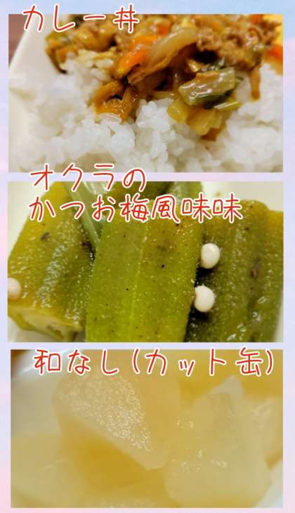 カレー丼とオクラのかつお梅風味 公開日 2024/06/04 更新日 2024/06/04 お知らせ 6月4日(火)の給食 だしこんぶとけずりぶしで出汁を取った『カレー丼』を頂きました。カレーライスも良いけど、和風のカレー丼も食べやすいですね。 『オクラのかつお梅風味』。 オクラの苦手な人でもこの梅風味でしたら美味しく頂けますね。ビタミン、ミネラル、食物繊維などの栄養素が多く含まれるオクラは栄養満点です。 いいね(0)