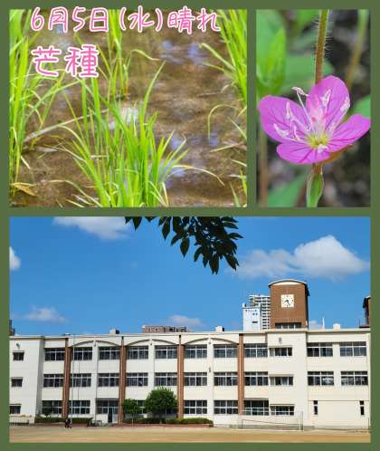 芒種 公開日 2024/06/05 更新日 2024/06/05 お知らせ 6月5日(水)晴れ 今日5日(水)からは、24節気の『芒種』に入ります。 「夏至」の一つ前の二十四節気で、ちょうど梅雨に入る頃となることが多い時季です。 芒種は「芒(のぎ)のある穀物の種をまく時期」という意味です。芒とはイネ科の植物に特有の、実の外殻(がいかく)にある棘(とげ)のような突起のことです。 (ウェザーニュースより) 今日は『火曜日の時間割』。 『耳鼻科検診』があります。 いいね(0)