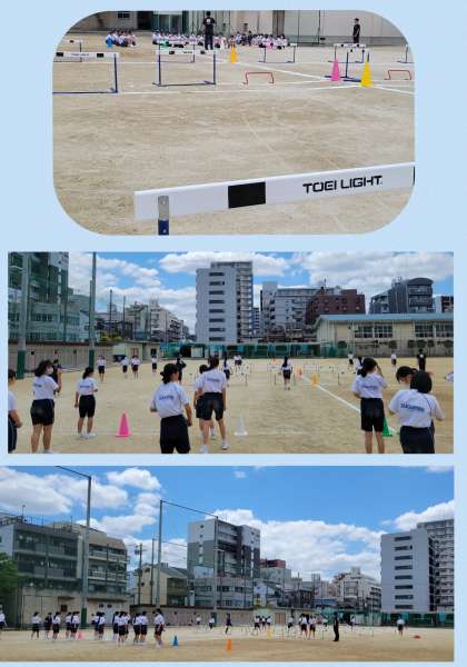 2年生体育授業では、ハードル走に取り組んでいました。多くの生徒にとって難易度が高いものです。