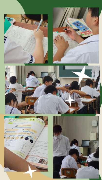 小学校英語の教科科もあり、中学一年生の一学期末テストでは、一昔前よりかなり進んだ内容を学んでいますね!