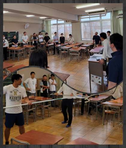 不審者が凶器を持って校内に侵入したことを想定した防犯訓練です。