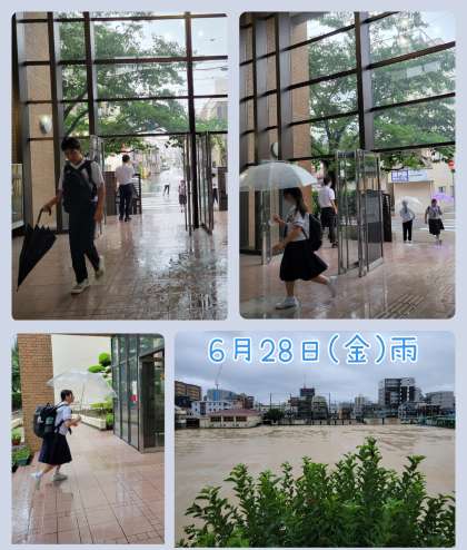 期末テスト 最終日 公開日 2024/06/28 更新日 2024/06/28 お知らせ 6月28日(金)雨 期末テスト最終日の朝、雨の登校になりました。 今日テストが終われば、『午後は部活動だー』、と楽しみにしていた生徒も多いことだと思います。しかし、運動場の活動は厳しいですね。 階段や廊下等で、夏の大会へ向けて体力づくりに励んでください。 いいね(0)