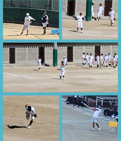 12時30分からの試合に合わせ、日中の暑い時間帯に気合いを入れて練習を行っていました。