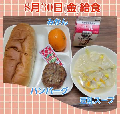 キーンと冷たいみかん 公開日 2024/08/30 更新日 2024/08/30 お知らせ 8月30日(金)給食 『焼きハンバーグ』 『豆乳スープ』 『みかん』 暑い季節、キーンと冷たいみかんは火照ったからだを冷やしてくれます。 美味しい! 冷たすぎて知覚過敏の方にとっては少し辛いかもしれませんね。 【食育つうしん】はこちらから → 食育つうしん(9月) いいね(0)
