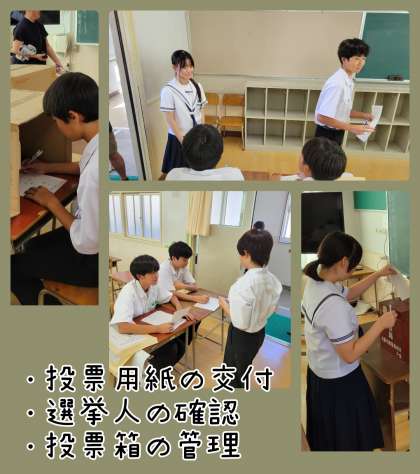 この生徒会選挙にかかわって、選挙管理委員会の皆さん、準備を始め、当日の運営と投票所の進行等に尽力され、本当にお疲れさまでした。