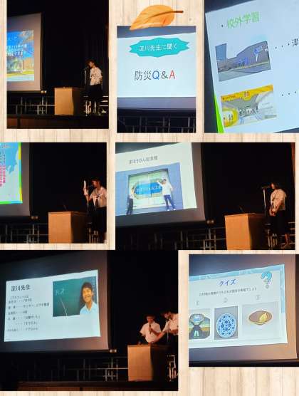 防災学習・校外学習プレゼン 公開日 2024/09/30 更新日 2024/09/30 お知らせ 先週、文化発表会の続きです。 二年生の『防災学習・校外学習プレゼン』についての発表です。 学年行事の取り組みを報告していました。 一方的な報告で進めるのではなく、クイズを入れ、会場全体を巻き込んで行っていました。 淀川先生は、ここで登場します。 ありがとうございました。 いいね(0)