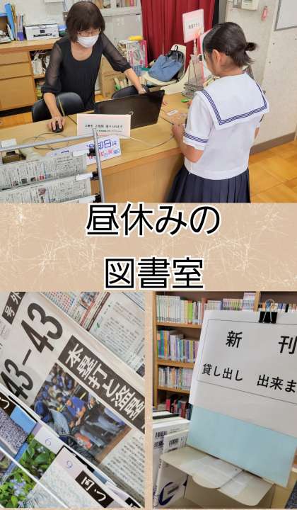 毎週水曜日は、終日図書室に学校司書が居られます。本の貸し出しだけでなく新刊本の配置や生徒の興味関心のある棚のレイアウトなど、生徒たちが読書よくを刺激するような仕掛けがあったりします。