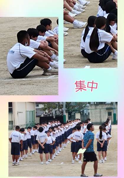 体育科教員から体育大会に向けて、大切なお話があり、真剣な表情で聞き入ってました。