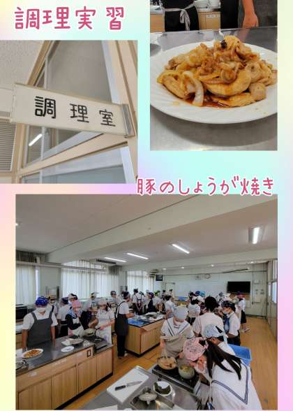 本館廊下、三年生教室前に漂う豚しょうが焼きの香り。三時間目、二年生が調理実習に臨んでいました。11時25分、空腹の時間だけにその香りに食欲をそそられます。
